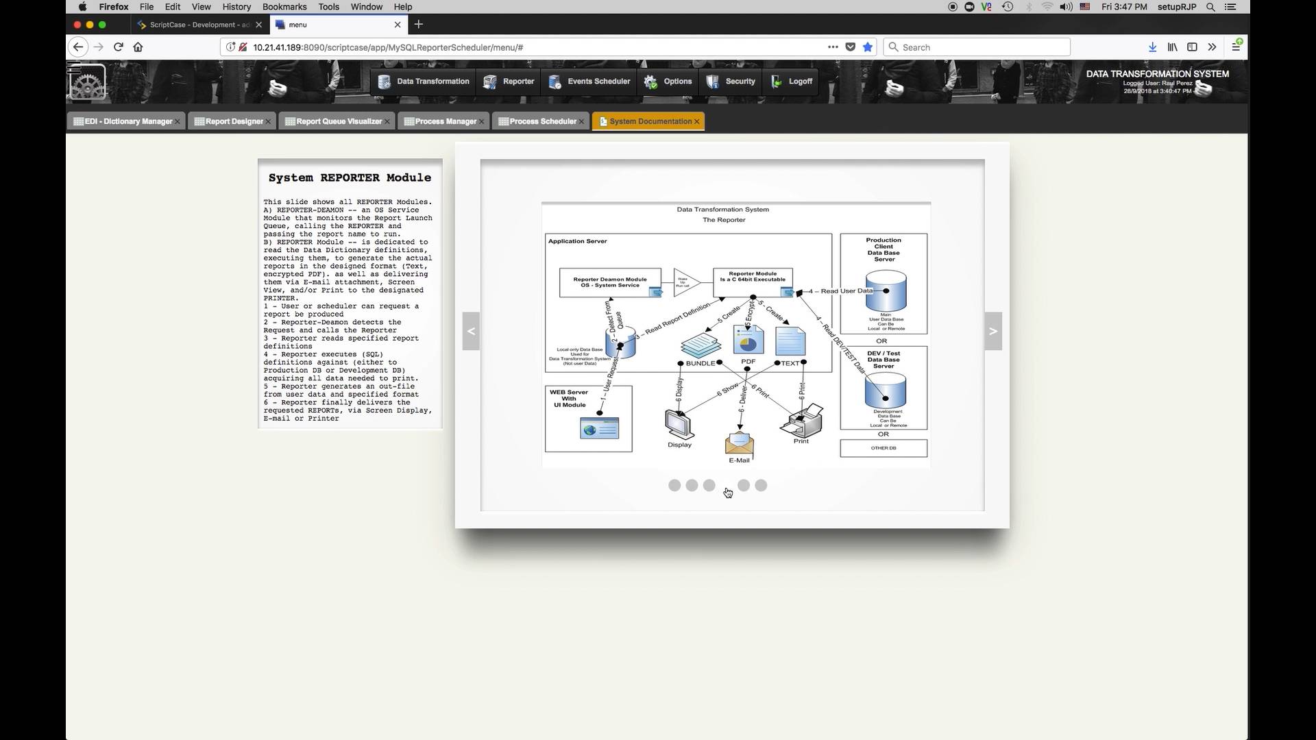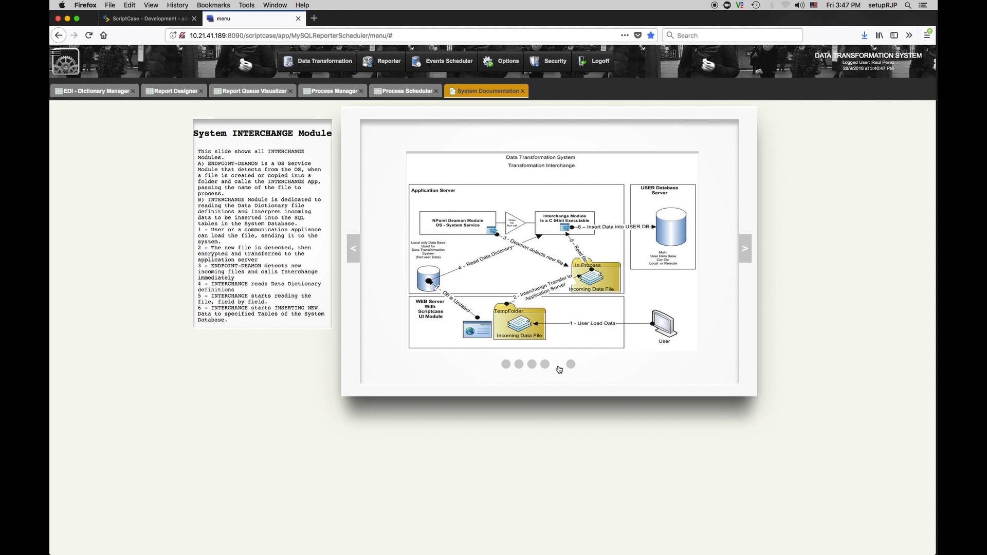 Producing the required documentation as well as administration modules.
